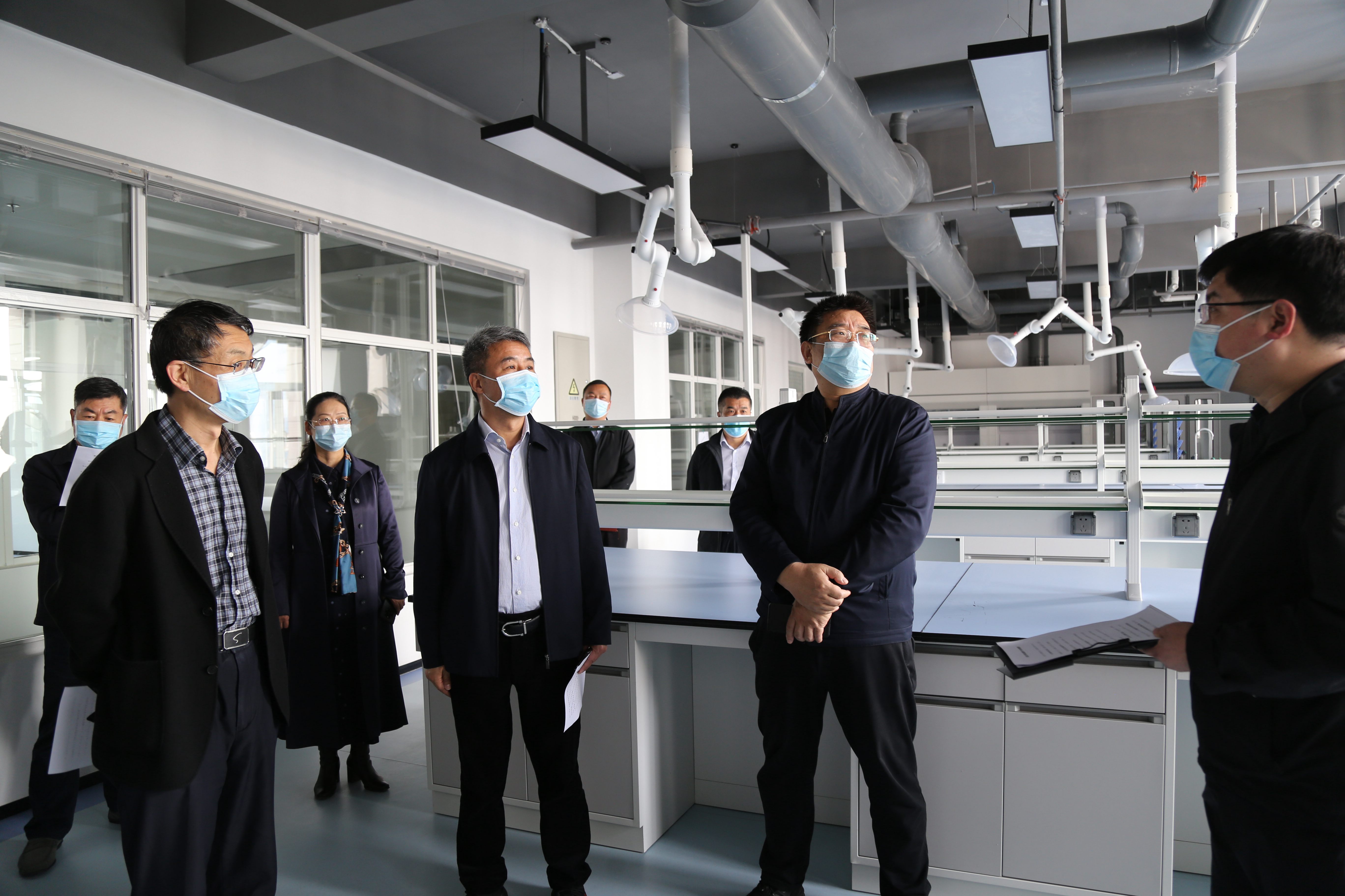 党委办公室、党委宣传部、院长办公室、学生处、校地合作办公室、基建管理处、保卫处、后勤管理服务中心、实验室与设备管理中心、许昌大学科技园等单位负责人陪同调研。(摄影:钟伟平)