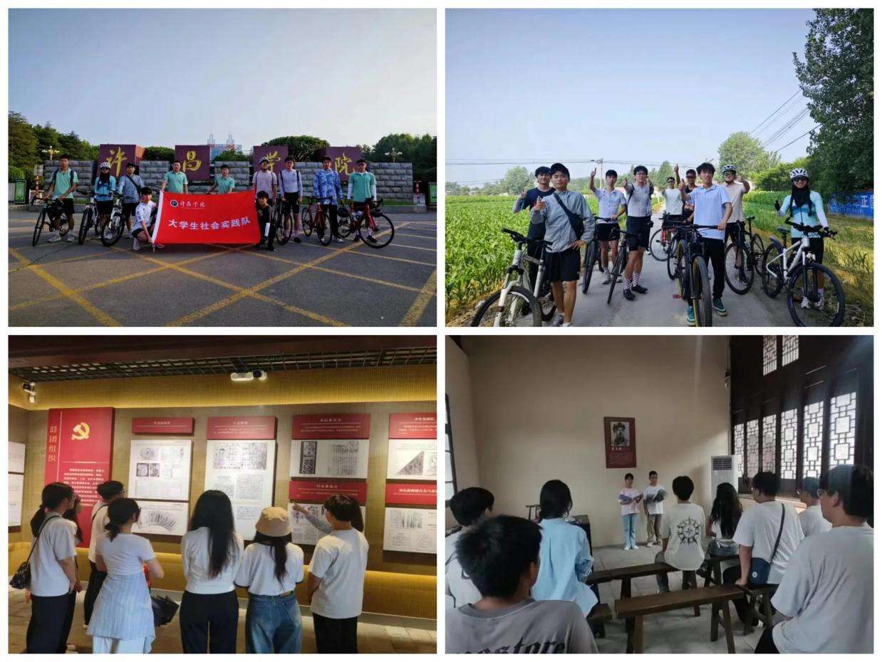 体育学院“骑行红色路,传承革命魂”暑期社会实践队通过骑行游历感受时代变迁,队员们先后参观了南街村毛泽东雕像、缅怀临颍烈士陵园先烈、沿途欣赏黄龙湿地美景,深刻感悟到美好生活的珍贵与革命精神的伟大,立志践行先辈传统,为实现中华民族伟大复兴中国梦贡献青春力量。音乐舞蹈学院“赓续红色血脉,谱写时代华章”艺术采风暑期社会实践队深入信阳新县革命老区,通过寻访革命遗迹,传唱经典红歌,在歌声与旋律中感悟革命精神,赓续红色基因,砥砺青春理想。
