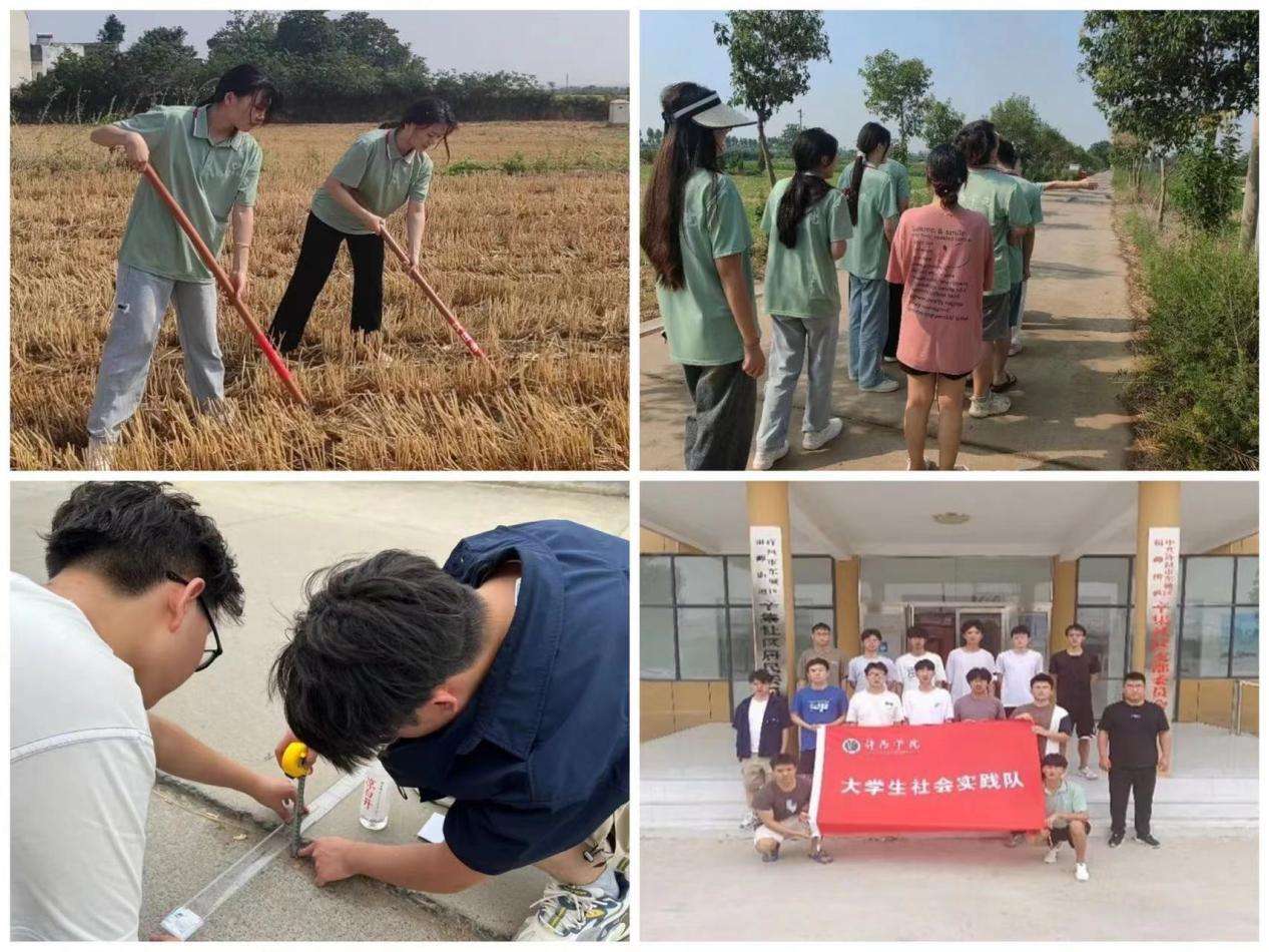 商学院“筑梦艾庄”暑期社会实践队赴许昌市艾庄乡,针对村民生活状况与乡村经济发展开展深入调研。队员们深入田间地头,通过开展问卷调研、劳作体验、电商知识普及,深入了解乡村发展现状,助力乡村经济振兴。土木工程学院“乡村路面硬化调查”暑期社会实践队赴许昌市辛集村调查路面硬化情况,协助改善乡村交通条件。在村委会协助下,团队深入了解施工难题,制定破解方案,用所学知识为乡村发展添砖加瓦。