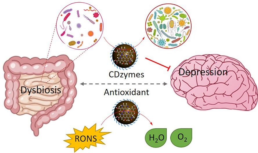 抗氧化碳点纳米酶治疗抑郁症机制示意图