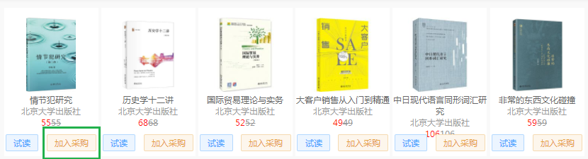 5、选书:点击任意分类或书单,即可进入对应书目列表页,选择心仪的图书,点击”加入采购“即可。