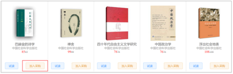 三、选书:点击任意分类或书单,即可进入对应书目列表页,选择心仪的图书,点击“加入采购“即可。