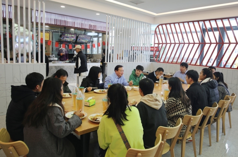 11月23日中午,bet36体育在线党委书记郭涛来到沁园春餐厅三楼与青年学生共进午餐,面对面谈心交流。