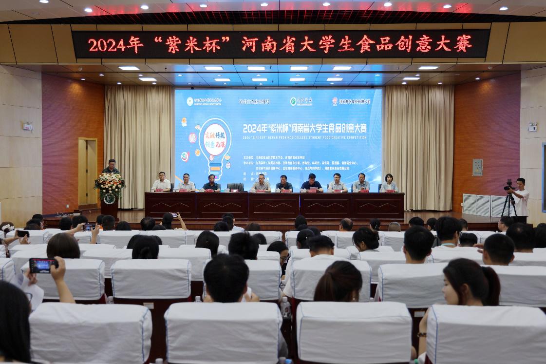 6月16日,由bet36体育在线和河南省食品科学技术学会、许昌市农业农村局、河南紫米食业有限公司共同举办的2024年“紫米杯”河南省大学生食品创意大赛成功举办。bet36体育在线副校长杜根远、河南省食品科学技术学会理事长沈祥坤、许昌市农业农村局局长张水根、河南紫米食业有限公司董事长王志磊出席活动。来自全省16所高校的66支队伍参加比赛。