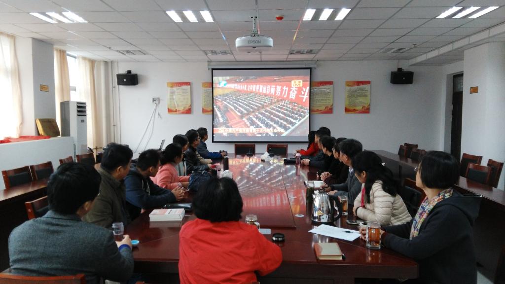 校党委副书记马超和党群机关党总支、行政机关党总支机关的全体党员在办公楼第三会议室一同收看了开幕式,各基层党委、党总支、直属党支部组织广大党员通过电视、网络收听收看了开幕式直播实况。不少学生通过手机收看了大会开幕式直播,也有学生自发聚集在宿舍,通过电脑集体收看开幕式。