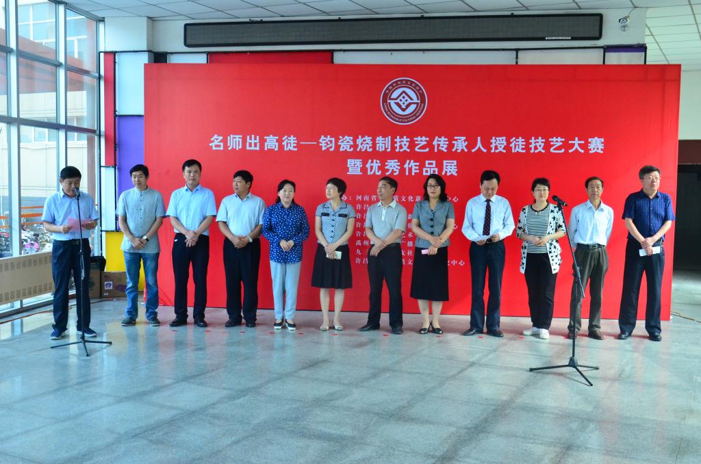 开幕式上,与会领导为第一届和第二届钧瓷烧制技艺大赛优秀传人颁奖,许昌市人民政府副市长秦春梅宣布大赛开幕。