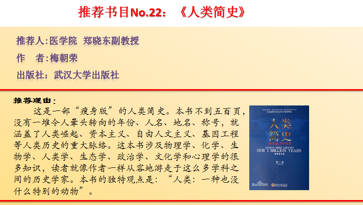【编者按】 今年4月,bet36体育在线启动了第十二届“阅读· 悦心·约未来”读书活动,为进一步激发全校师生爱读书、会读书、读好书的浓厚兴趣,努力营造书香校园的良好氛围,校党委宣传部(新闻中心)联合各二级学院、图书馆特别策划了“教授为你列书单”活动,邀请各学院21名教授(副教授)向广大师生精心推荐23本好书,学校官方网站、校报、官方微博、微信公众号、校园广播等多种媒体平台近期同步推送,敬请关注。