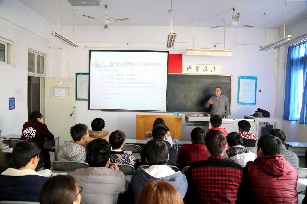 新学期第一天,我们在14级计算机专业的《操作系统》课堂见到了bet36体育在线特聘教授之一——朱贵良老师。朱教授在其研究领域是一位成果丰硕的知名学者,不久前从华北水院退休后,被bet36体育在线作为高层次人才引进,成为了学校的特聘教授。