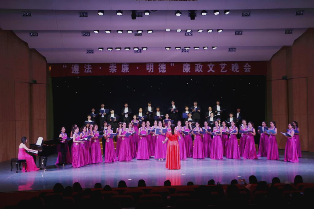 晚会在磅礴大气的《人民公仆》和《情系人民》大合唱中拉开了帷幕,晚会一开始就将师生带入了浓郁的廉政氛围。小品《同学会》以及学生自编自演的相声《我的大爷是市长》幽默风趣,让师生在捧腹大笑之余自觉加强了廉洁奉公意识。诗朗诵《我心清澈》更是带领观众思考关于遵法·崇廉·明德的内涵。整台晚会内容丰富,精彩纷呈,师生们以多种艺术形式,为大家奉献了一场廉政文化视听盛宴,同时警示师生廉洁自律,将廉政文化自觉纳入心田,起到了良好的廉政主题教育作用。