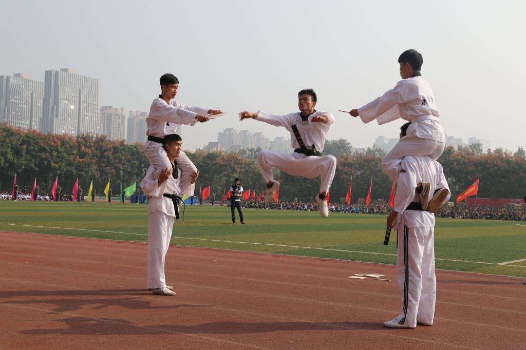 8时30分,仪式正式开始。伴随着雄壮的检阅进行曲,入场分列式表演开始。各院(部)2015级6000余名新生在bet36体育在线校旗和院部旗帜的引导下,精神抖擞地迈着正步,高喊口号,依次走过主席台接受检阅。分列式结束后,2015级新生还进行了军训科目表演,体育学院等单位还选送了跆拳道、啦啦操等精彩的节目演出。