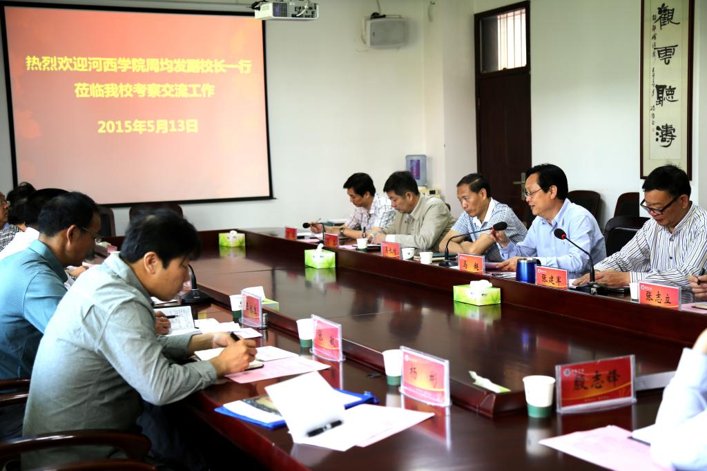 5月13日,甘肃河西学院副校长周均发一行来bet36体育在线考察工作,双方进行了座谈交流。党委副书记马超、副院长张建军参加了座谈会。
