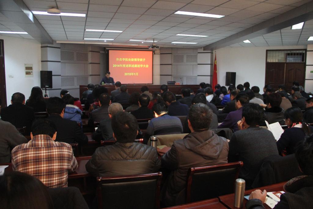 会上,全校各教学院部、机关及教学辅助部门、科研机构等单位的党政负责人对2014年度工作进行了述职述廉述学,汇报了2014年的工作成绩以及存在的问题,并简要汇报了2015年度的工作思路、主要工作安排等。