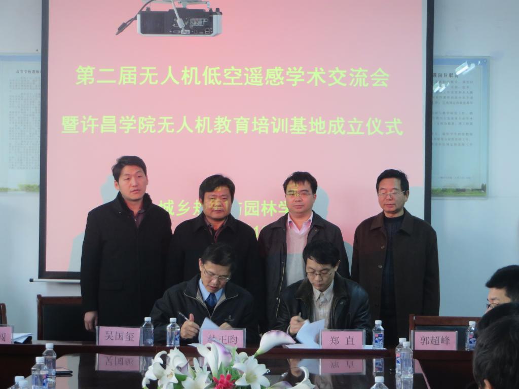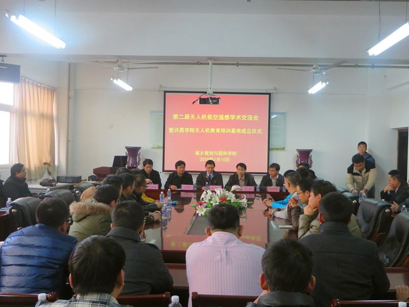 2015年1月10日,由bet36体育在线城乡规划与园林学院主办的第二届无人机低空遥感学术交流会暨河南省无人机教育培训基地成立大会在综合实验楼二楼会议室举行。台湾碳基科技股份有限公司总裁林正昀、北京中云图科技有限公司董事会会长付守闯、bet36体育在线副院长郑直,学校职能部门负责人、城乡规划与园林学院领导、相关教师、及企业技术人员参加了本次会议。会议由城乡规划与园林学院院长吴国玺主持。