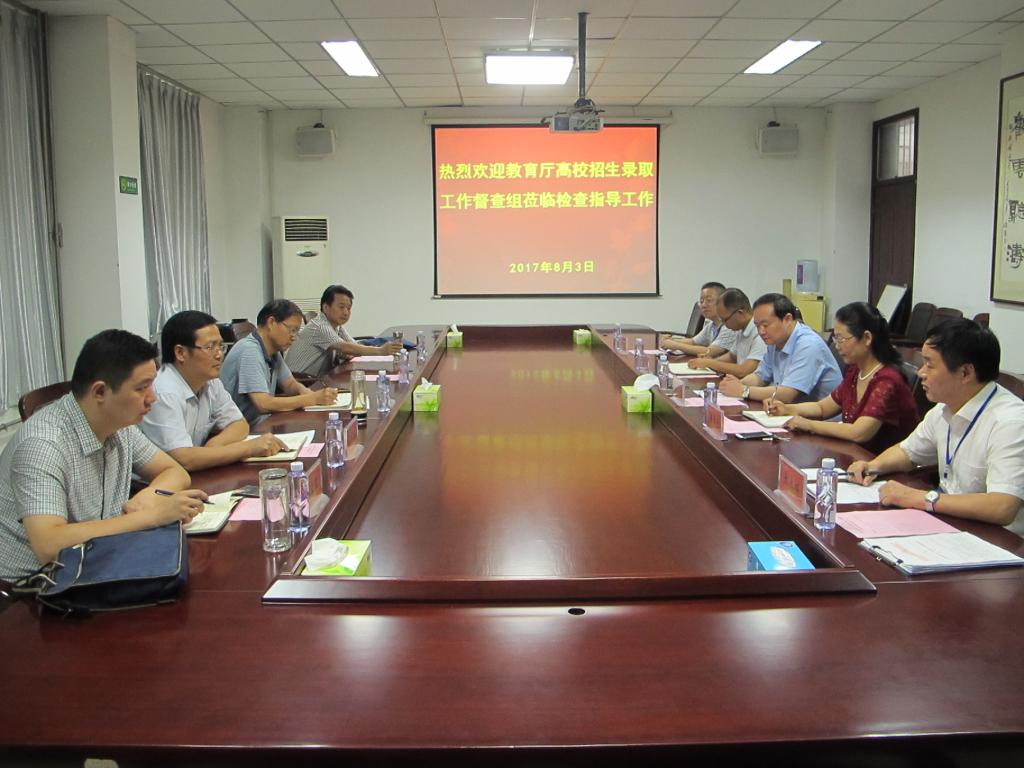 8月3日下午,省教育厅高校纪工委副书记、纪检组副组长王瑜一行四人莅临bet36体育在线,检查指导学校2017年招生录取工作。bet36体育在线在办公楼第一会议室召开汇报会,副院长郭涛出席会议,党政办公室、纪委(监察处)办公室和招生办公室等相关单位负责人参加了汇报会。