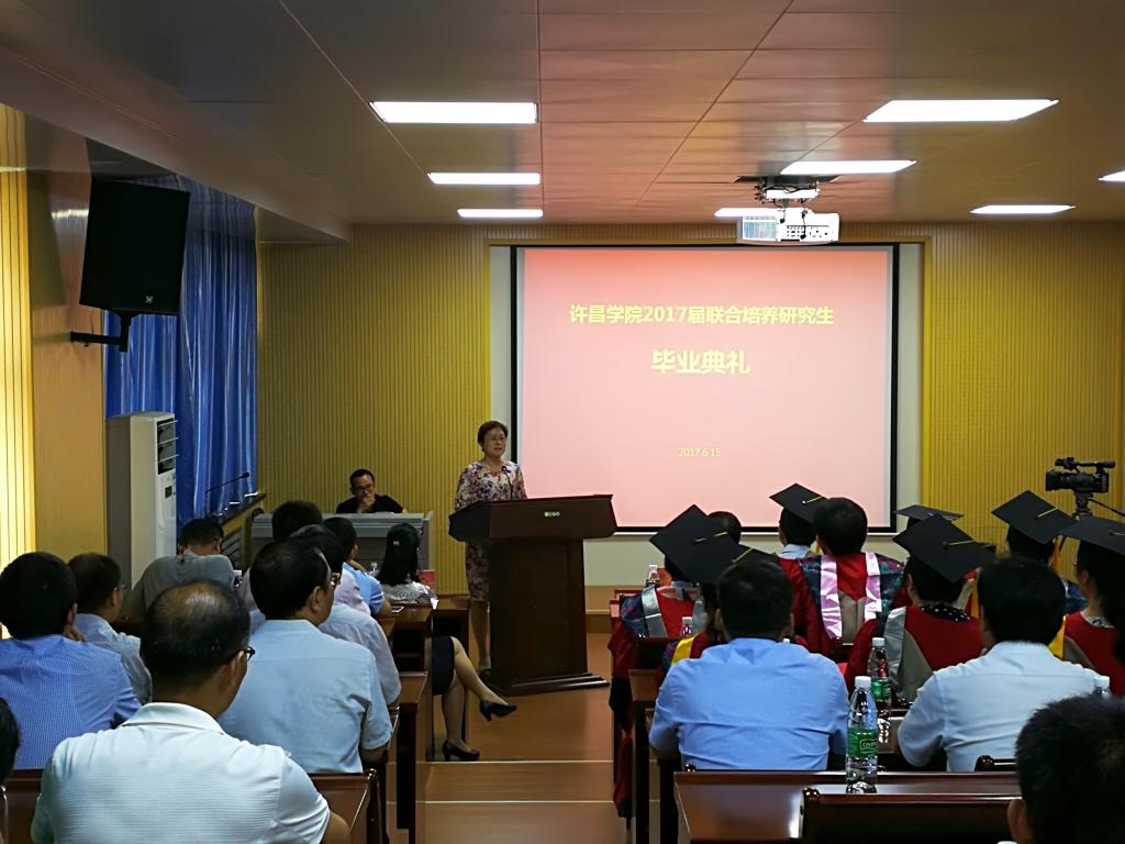 6月15日下午,bet36体育在线与电子科技大学、南京理工大学、郑州大学、河南大学联合培养的2017届研究生毕业典礼在食品与生物工程学院报告厅举行。院长、博士生导师赵继红教授,副院长、博士生导师郑直教授出席典礼仪式,bet36体育在线学科建设办公室主任、各专业体研究生导师、2017届毕业研究生及部分在读的联合培养研究生共同参加了典礼。毕业典礼由学科建设办公室主任田萍主持。