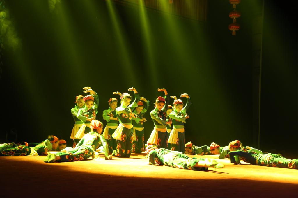 演出中,悦耳的霸王鞭、俏皮的颠花挑、豪气的大碗酒、喜庆的扭秧歌等极富中原民间乡味的舞姿让在场师生大饱眼福。模拟农民春耕场景,寄托人们“人强牛壮,丰收在望”的《打春牛》在表现农民兄弟质朴的品格,勤劳的本色的同时,也体现了他们对于生活的热爱;以河南著名民歌《编花篮》为蓝本创作的舞蹈《摘棉花》表现了一群妙龄少女活泼欢乐的劳动场景,轻盈灵动的舞姿,别具匠心的服装道具让人过目不忘;压轴舞蹈《抬花轿》将国家级非物质文化遗产“高抬火轿”和河南秧歌融合在一起,展现了河南秧歌特有的“大脚踩,大手甩”的特征以及独有的执扇方式和脚下律动。