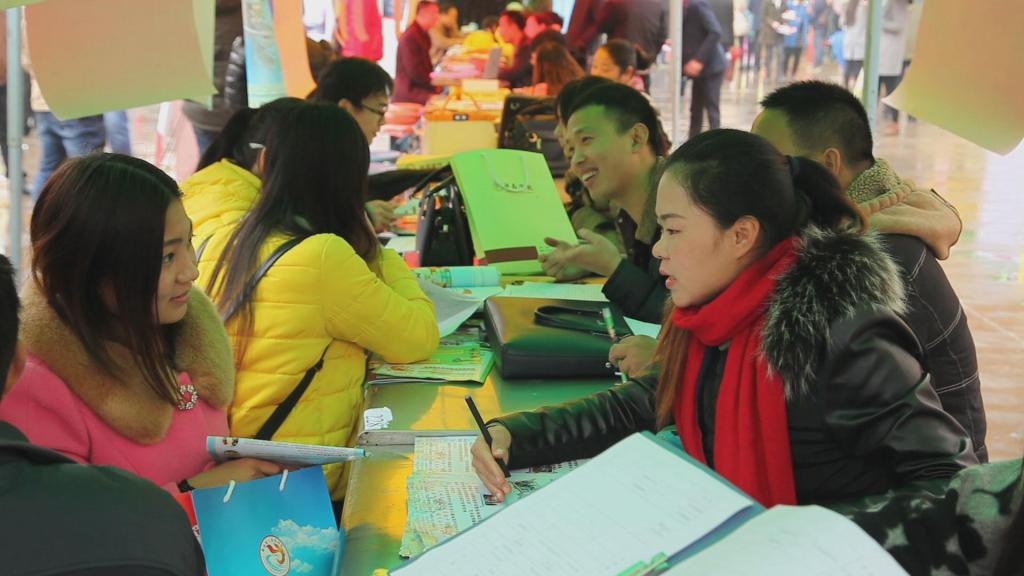 上午8点,用人单位和应聘学子陆续进场,虽然细雨蒙蒙,但依然不影响双选会有条不紊的火热进行,用人单位在各自的展位前打出不同类型的招聘广告,发放精心制作的宣传资料,详细介绍本单位情况和招聘信息,以吸引毕业生的注意。
