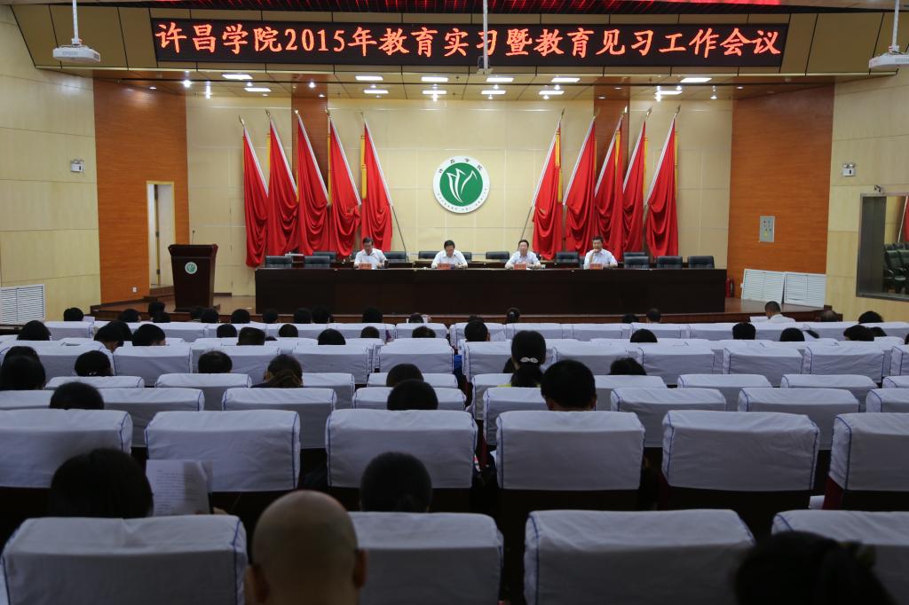 9月15日上午,bet36体育在线与许昌市教育局在学术报告厅联合召开了2015年教育实习、教育见习工作会议。许昌各市、县、区教体负责同志,优秀实习学校校长和许昌市直、许昌县、魏都区、东城区、经济技术开发区的实习基地负责人及实习带队教师等190余人参加会议。副院长赵正风出席会议,会议由bet36体育在线教务处处长张元敏主持。