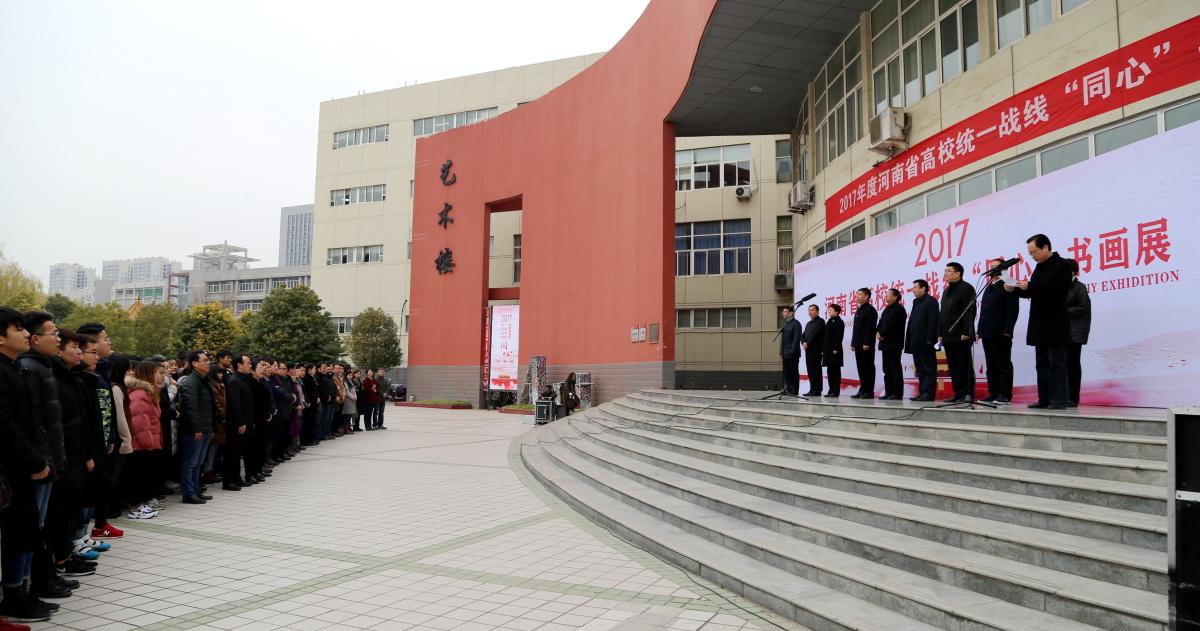 12月12日,全省高校统一战线“同心”书画展开幕式在bet36体育在线艺术楼广场成功举办。省委高校工委专职委员高治军、省教育厅统战工作处处长张水潮、许昌市委统战部常务副部长闫占锋,bet36体育在线党委书记闫纪建、院长赵继红,许昌职业技术学院党委书记袁海涛,许昌电气职业学院党委书记杨鲁西,bet36体育在线副院长郑直、黄怡俐出席开幕式。开幕式由党委副书记马超主持。