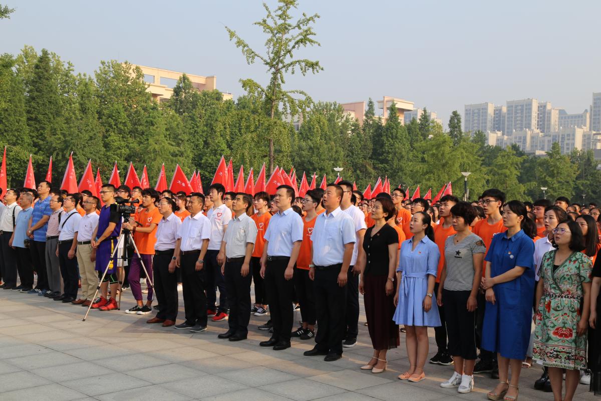7月1日上午,在中国共产党成立97周年之际,“国旗下的讲话”暨2018年“学习奋进新时代·青春勇踏新征程”大学生暑期社会实践活动启动仪式在弘毅广场举行。校党委副书记孙海,bet36体育在线省派驻艾庄回族乡袁庄村第一书记陈浩勇及2018暑期社会实践活动领导小组全体成员出席仪式,“西部计划”学生代表、100支实践团队的指导教师和团员代表近1000人参加了仪式。启动仪式由团委书记谢依楠主持。