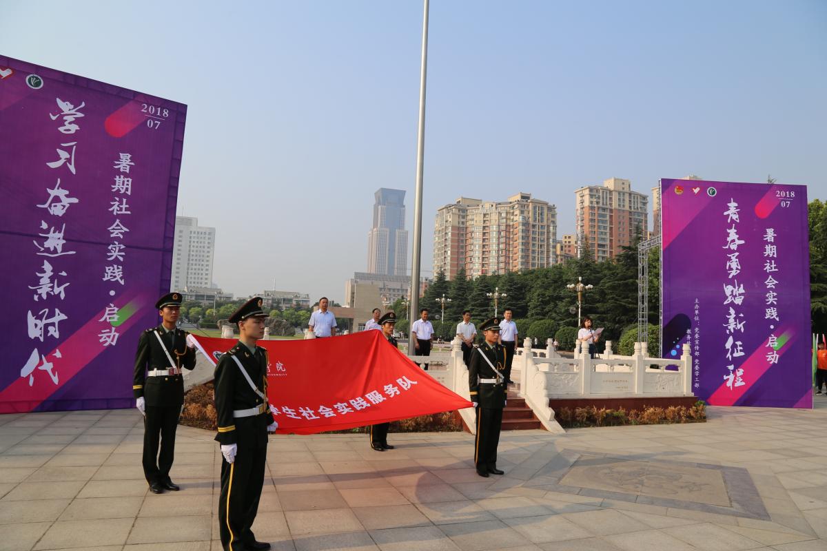 7点30分,五星红旗冉冉升起,仪式在庄严肃穆的国歌声中正式开始。党委宣传部部长冯晓民对2018年社会实践活动前期筹备和开展情况作了整体介绍,100支参赛团队情绪高昂,整装待发。