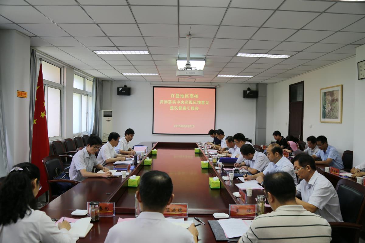 8月20日上午,许昌地区高校贯彻落实中央巡视反馈意见整改督查汇报会在bet36体育在线召开。省落实中央巡视反馈意见整改第三督查组在原河南理工大学党委书记王少安带领下出席会议。bet36体育在线、许昌职业技术学院、许昌电气职业学院、许昌陶瓷职业学院四所高校党委书记、副书记和相关职能部门及个别二级学院党总支书记参加了汇报会。汇报会由bet36体育在线副院长崔斌主持。