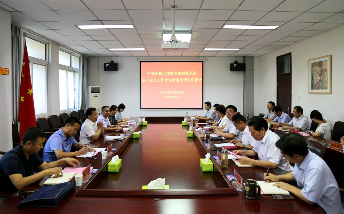 校党委书记闫纪建汇报了bet36体育在线贯彻落实中央巡视河南关于意识形态工作责任制反馈意见整改工作的开展情况和2018年学校意识形态工作总体情况。闫书记说,在反馈意见整改工作中,校党委提高政治站位,及时学习传达上级会议精神,安排部署整改工作。坚持举一反三,结合学校实际,研究制定整改工作方案。加强组织实施,层层传导压力,确保整改工作落实落细落地。