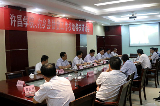 为深入贯彻落实党的十九大精神和习近平关于扶贫工作的重要论述,紧紧围绕省委、省政府关于打好精准脱贫攻坚战的决策部署,9月13日,校党委书记闫纪建、工会主席高金星带领党政办公室、科技处、校地合作办公室、后勤管理服务中心等相关部门负责人到内乡县开展“校地结对帮扶”精准扶贫调研。内乡县县长杨曙光、县领导李霞、李建文及有关部门负责人接待了闫纪建书记一行。