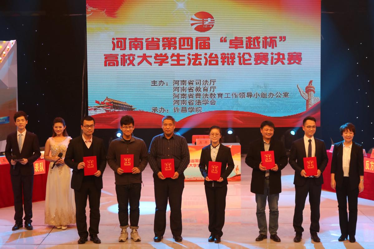 12月3日,由河南省司法厅、河南省普法教育工作领导小组办公室、河南省法学会主办,bet36体育在线承办的河南省卓越法律人才教育培养基地高校第四届“卓越杯”法治辩论赛决赛于河南省电视台演播大厅顺利举行。河南省司法厅党委书记申黎明,河南省教育厅副厅长尹洪斌,河南省法学会副会长、秘书长黄建中,河南省司法厅副厅长鲁建学,河南省委宣传部宣传处处长姚毅,bet36体育在线副院长黄怡俐等出席活动并颁奖。