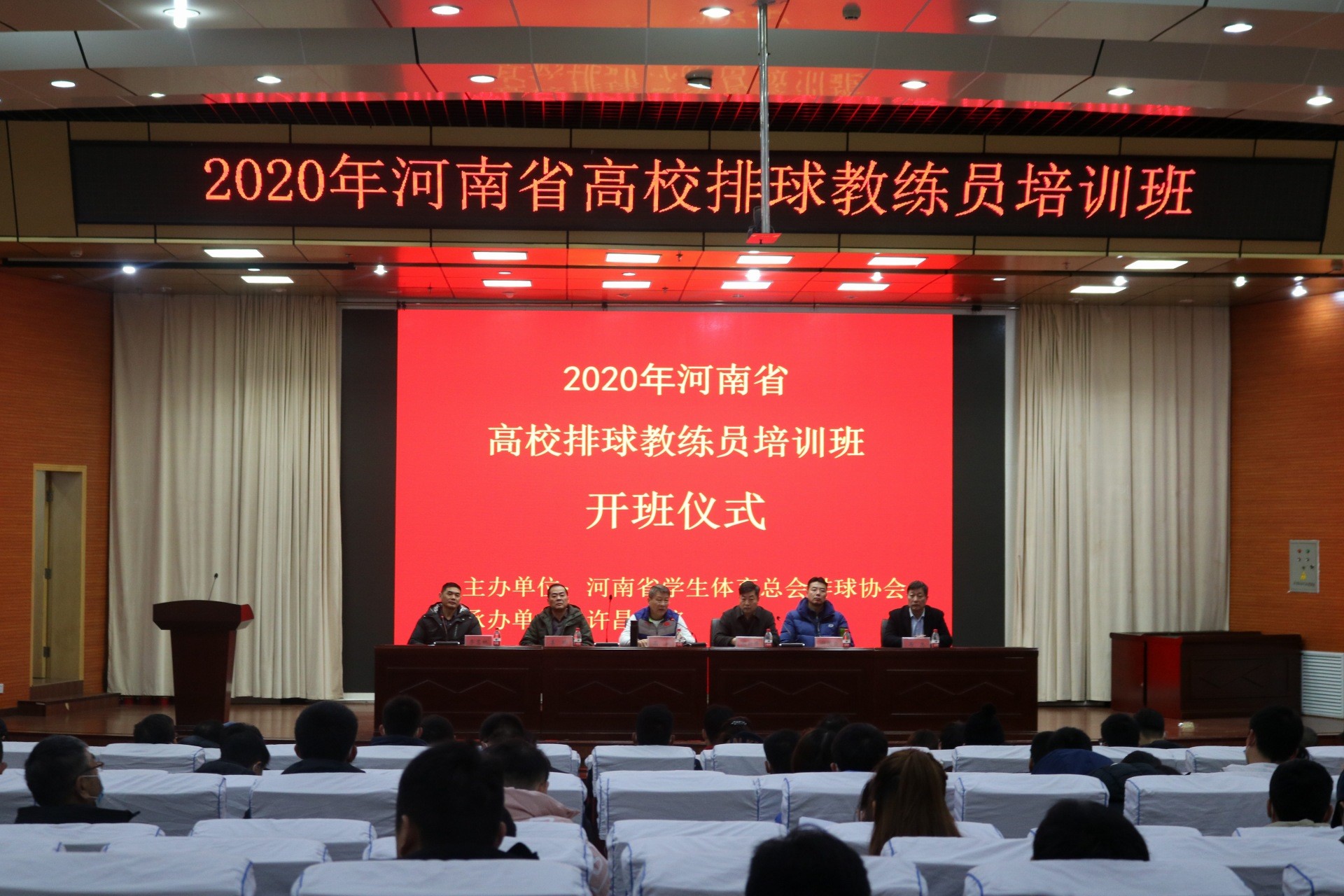 12月19日上午,由河南省教育厅、河南省学生体育总会主办,bet36体育在线、河南省学生体育总会排球协会承办的2020年河南省首届高校排球教练员培训班开班仪式在bet36体育在线图书馆二楼学术报告厅举行。河南省教育厅体卫艺处调研员高翔,河南省体育局球类运动管理中心党委书记、原中国男排主教练谢国臣,河南省排球协会裁判委员会主任、国家级裁判李鹏,bet36体育在线副院长周新峰出席开班仪式。开班仪式由河南省学生体育总会排球协会秘书长、bet36体育在线体育学院院长李慧林主持。来自省内55所高校100余名排球教练员参加仪式。
