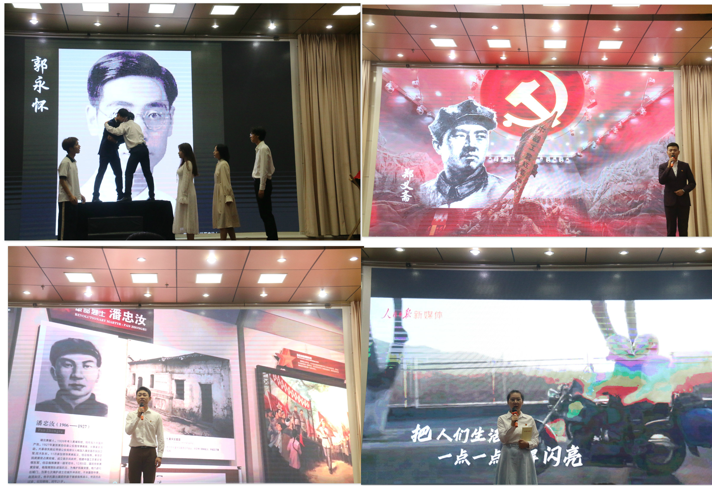 本次比赛自4月启动以来,共征集参赛作品39部,经过评委评审最终有12部作品入围决赛。决赛中,文史与传媒学院徐诺等同学带来的音诗画表演《一首歌的时间》,让大家跨越时空,感知“两弹一星功勋奖章”获得者、中国科学院学部委员郭永怀,为了回归祖国,投身中国国防建设毅然冲破美国层层阻碍回国,用生命守护核弹机密周全的英勇故事。信息工程学院王真真同学用感人至深的语言、鲜活生动的事例,讲述中国共产党波澜壮阔的百年历史,真情表达出学生党员对党的赤诚之心、对革命先辈的敬仰之心,并号召广大青年永立潮头、乘风波浪、继续向前。
