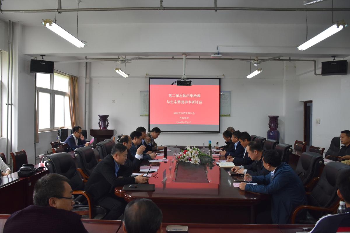 4月25日,由河南省自然资源学会、bet36体育在线共同举办的第二届水体污染治理与生态修复学术会议在bet36体育在线城乡规划与园林学院会议室举行。本学术论坛以“构建生态城市 共享绿色发展”为主题,专门组织邀请政府部门、企业、研究机构等各个方面讨论水体污染治理与生态修复问题。来自全国高等院校、科研院所、环保企业和管理部门的专家学者100余人出席了会议。研讨会由河南省自然资源学会副理事长、bet36体育在线城乡规划与园林学院院长吴国玺教授主持。